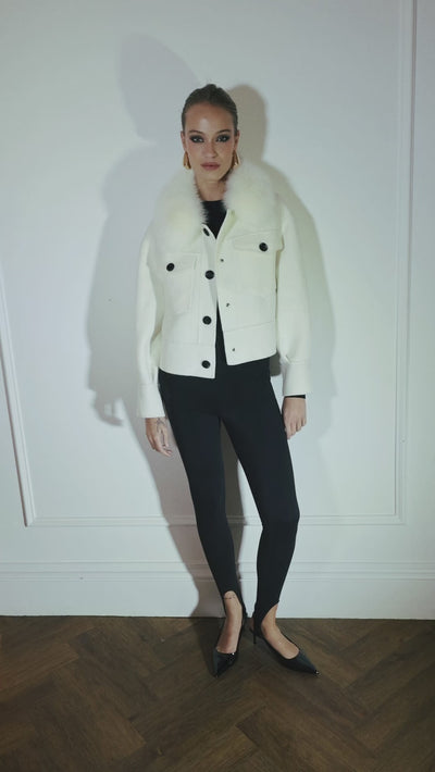 Experience the ultimate in luxury with our Fox Crop Bomber Beige. Crafted from a premium wool and cashmere blend, this jacket is a versatile addition to your wardrobe. Its detachable fur collar trim adds a touch of elegance, while the drop shoulder loose fit provides a chic, minimalist look. This timeless classic is the perfect staple piece for every season.